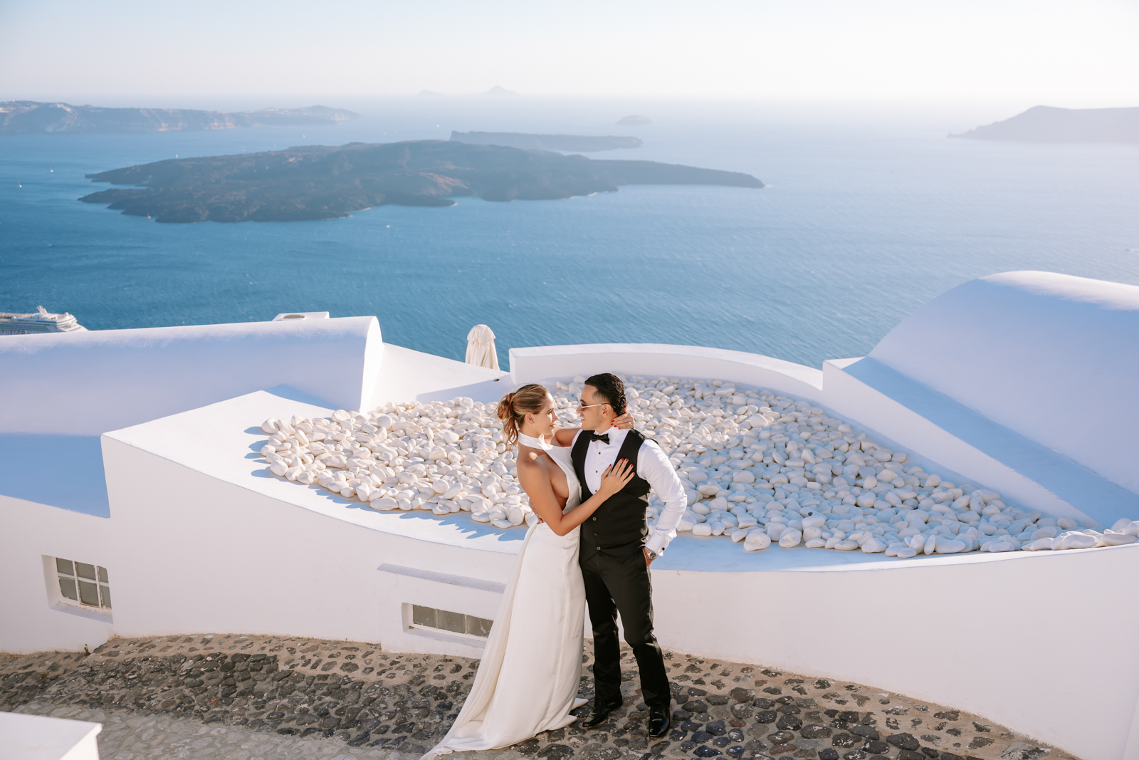 Días después cruzaron el océano para sus fotos de post-boda en Grecia. Porque su matrimonio no empieza con una rutina… empieza con una aventura.
